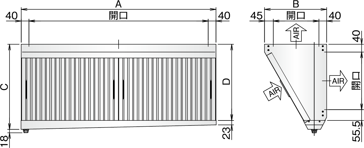 寸法 A×B×C×D(mm) = 1003×270×350×303