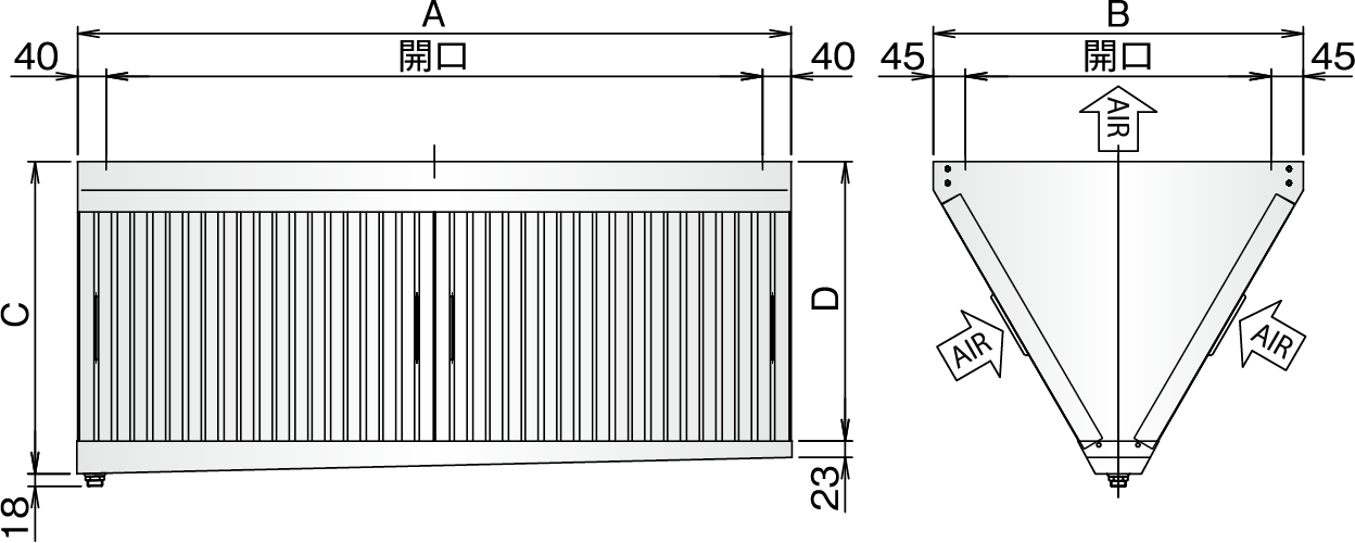 寸法 A×B×C×D(mm) = 1003×620×525×478